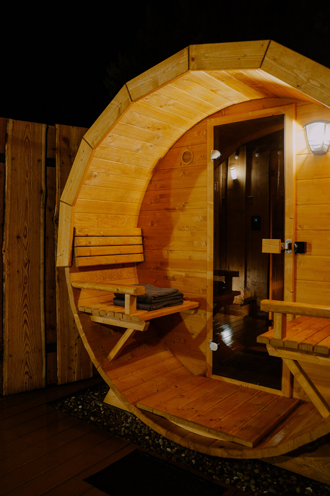 Zanurzcie się w błogim relaksie. Zarezerwujcie na wyłączność naszą saunę fińską i gorącą balię, by poczuć, jak znika całe napięcie.